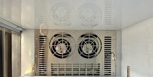 Bàn đông quạt gió 2 cánh được trang bị bảng điều khiển điện tử hiện đại, thường đặt phía trước thân tủ: