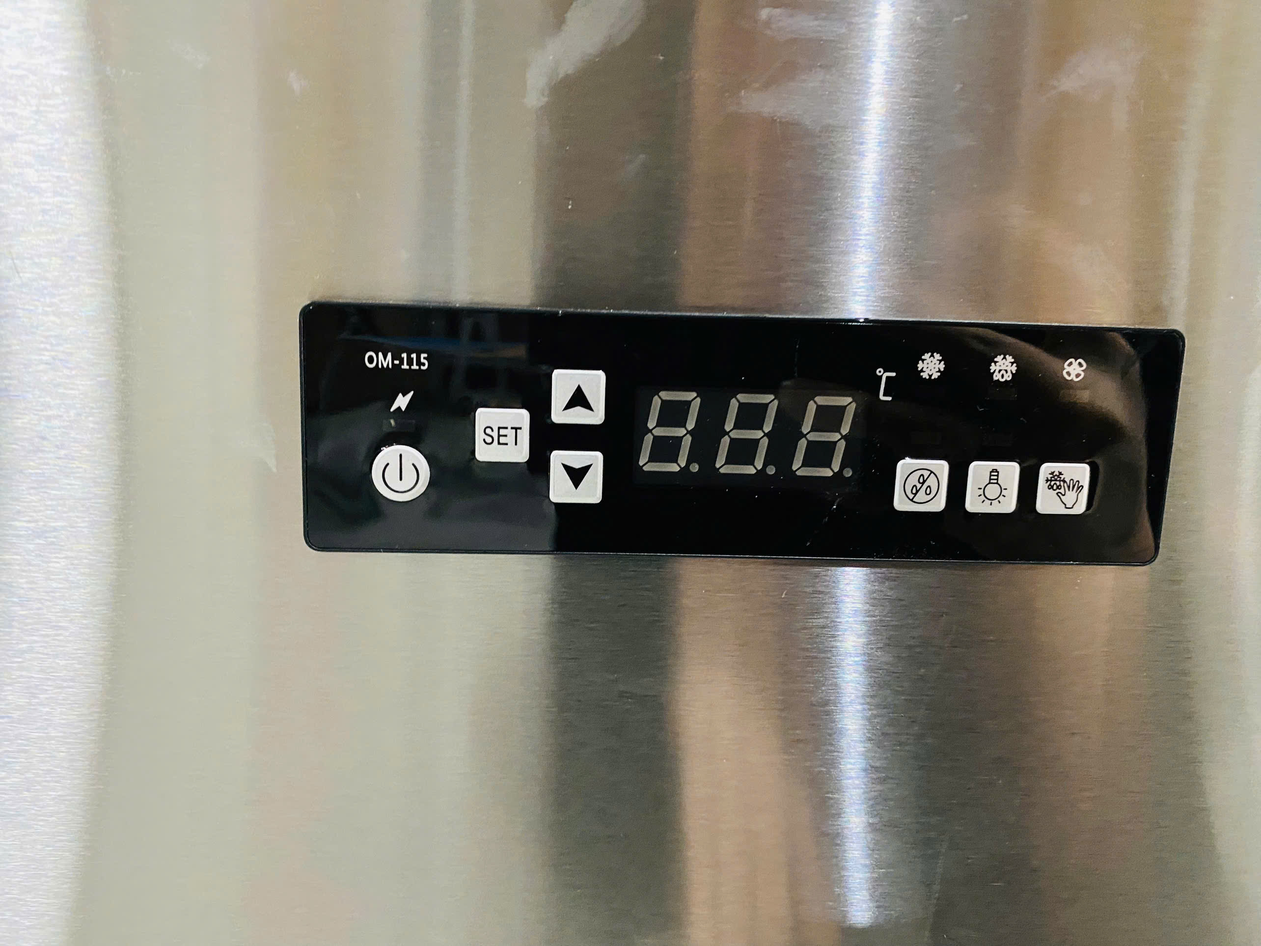 Bàn đông quạt gió 2 cánh được trang bị bảng điều khiển điện tử hiện đại, thường đặt phía trước thân tủ: