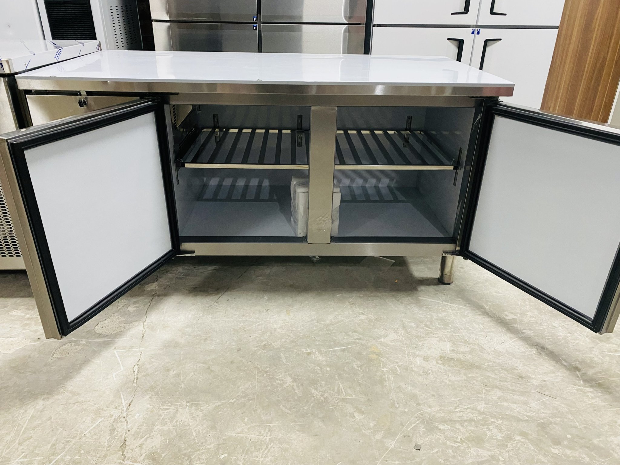 Sản phẩm tủ bàn mát, bàn lạnh nói chung và Tủ bàn đông quạt gió 2 cánh inox 1.8m nói riêng được VINALIFE sản xuất trên dây chuyền công nghệ tiên tiến, đảm bảo chất lượng cao cấp. Chúng tôi không chỉ nỗ lực mang đến cho khách hàng sản phẩm đúng với cam kết, mà còn cung cấp các dịch vụ hậu mãi như: bảo hành, bảo trì, sửa chữa.