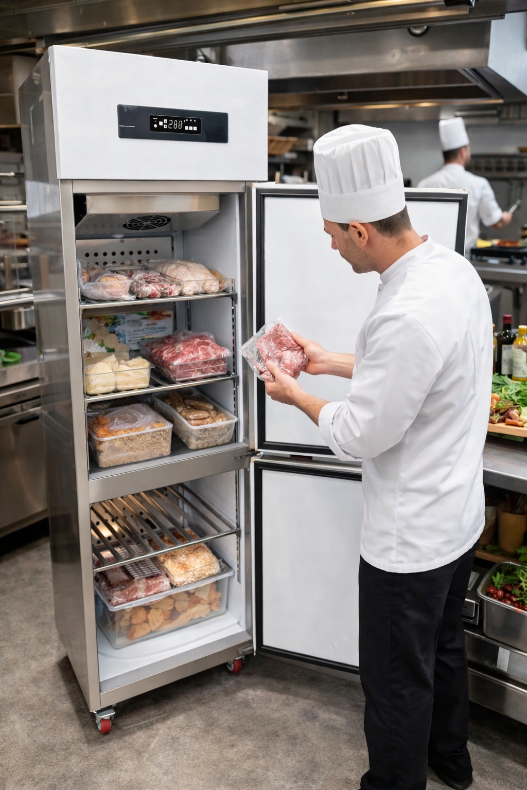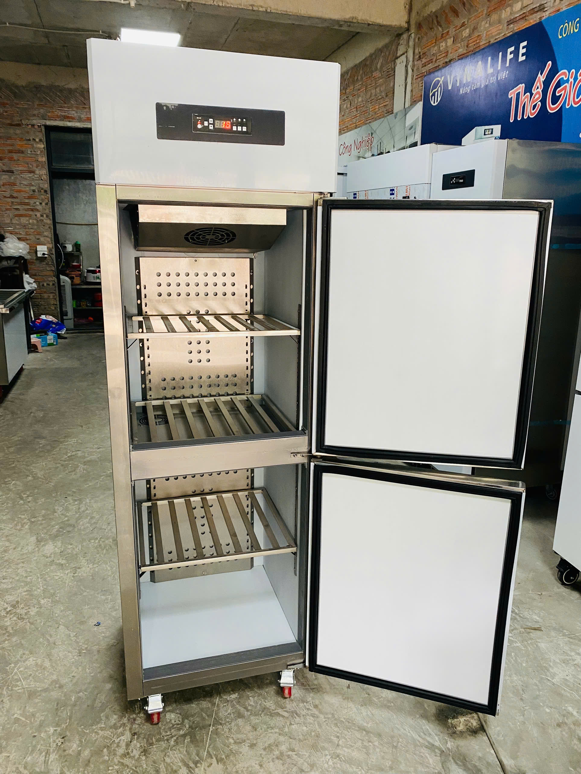 Tủ được thiết kế theo tiêu chuẩn bếp công nghiệp với: 2 cánh mở riêng biệt giúp hạn chế thất thoát hơi lạnh Công nghệ làm lạnh quạt gió đối lưu hiện đại 2 chế độ hoạt động linh hoạt: đông sâu & làm mát 👉 Nhờ đó, người dùng có thể sử dụng 1 thiết bị cho nhiều mục đích, thay thế cả tủ đông và tủ mát truyền thống